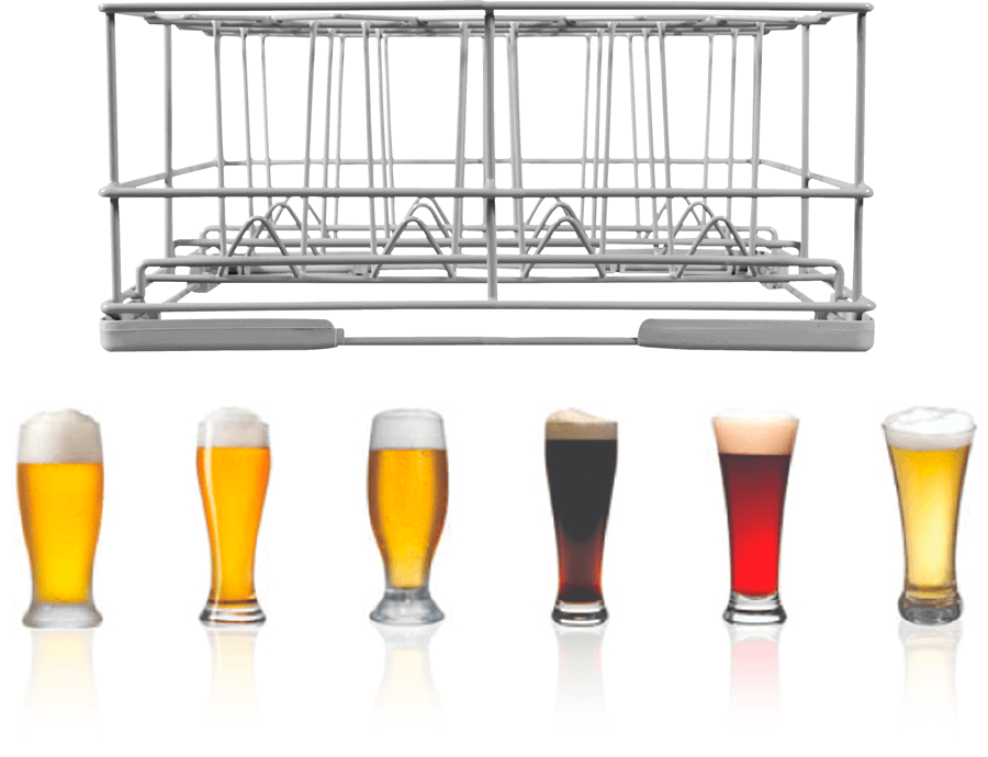 The Tall Glass Basket is suitable for 'Continental' style glasses that measure over 150mm in height. This includes glassware such as Pilsner glasses, Heineken and Peroni glasses.