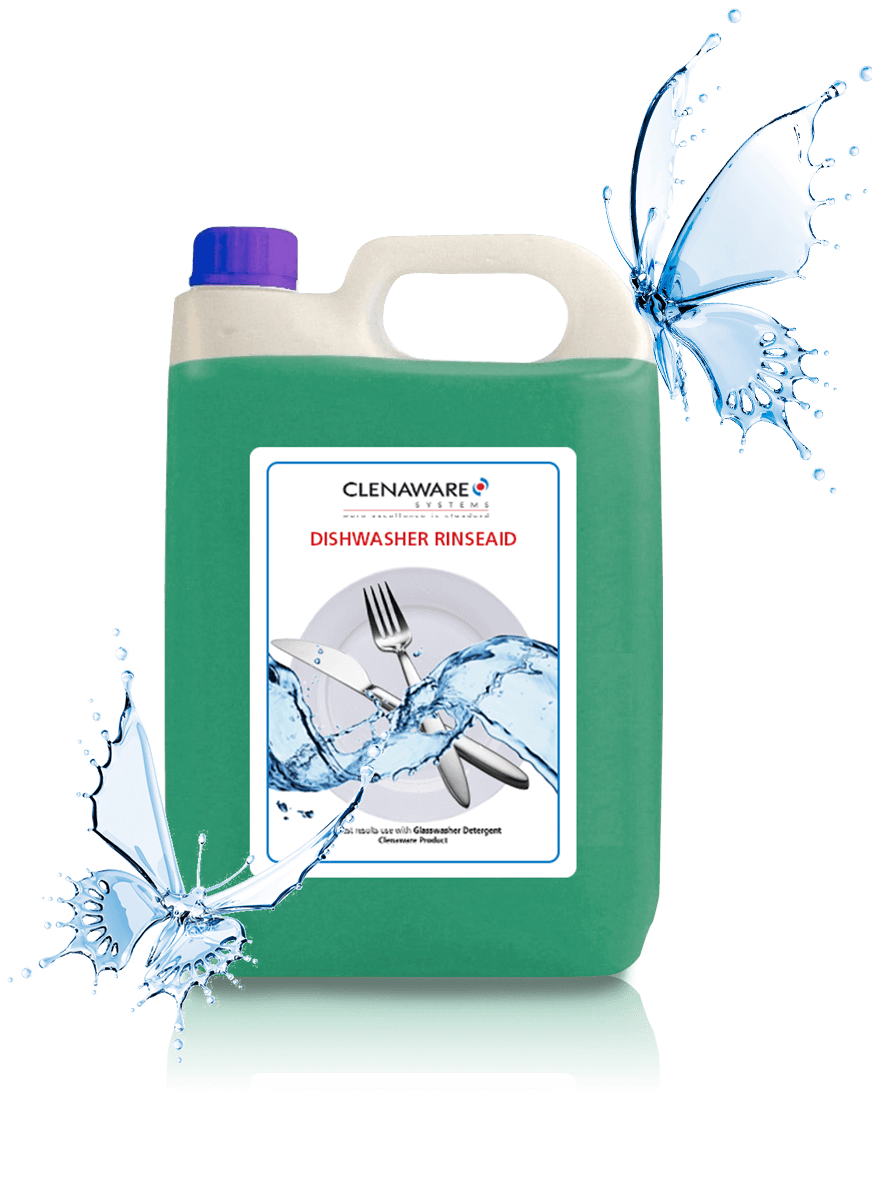 Clenaware Dishwasher Rinseaid is a liquid rinse additive specially designed for cabinet dishwashers. It is easily mixed, safe to use and has no adverse effects on equipment or crockery. Dishwasher Rinseaid is very tolerant of hard water.