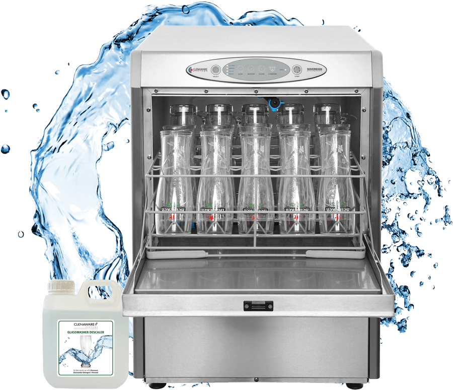 Limescale isn’t just unsightly; it’s also another factor preventing the delivery of perfect results, not to mention the damage it can do to your glasswasher if allowed to build up inside of the machine. Scale can be an aesthetic problem, leaving streaky and ‘milky’ looking marks on otherwise clean glasses. Sovereign Descaler helps to remove hardness from the water inside the machine. Scale likes to cling to parts such as heating elements, wash arms and water hoses, so your glasswasher is the perfect ‘host’ for scale build-up. When using Sovereign Descaler with Sovereign Detergent, you can achieve ideal cleaning results; they are also essential for keeping the working parts of your glasswasher running smoothly and efficiently.