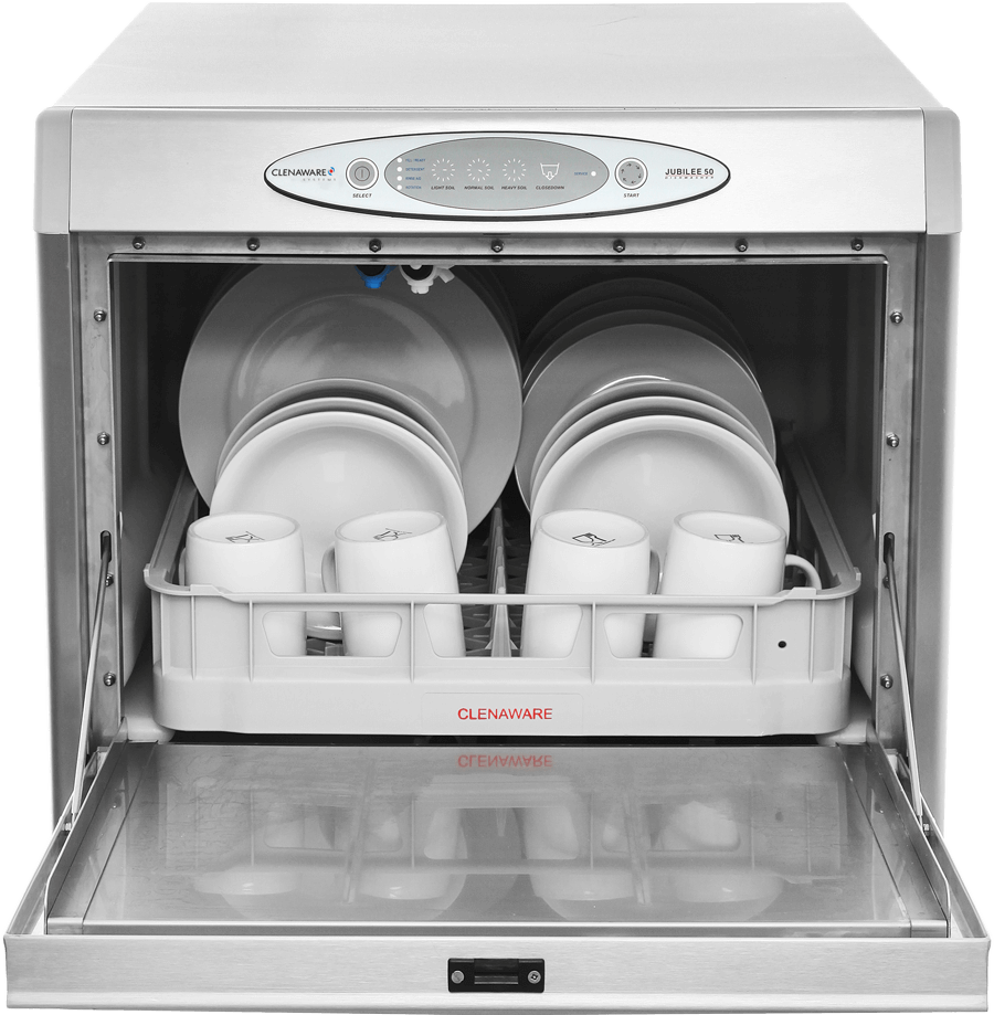 The Jubilee 50 Dishwasher is a fully integrated machine, which comes fitted as standard with a rinse pump; wash pump and waste pump system. With other manufacturers, these are optional extras which can cost you hundreds of pounds on top of the cost of a machine.