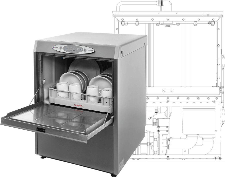 As your machine is running and heating up water, it produces steam which can fill your kitchen, making it hotter. The ERS takes this steam byproduct and uses it to pre-heat the cold water that is entering the dishwasher at no extra cost. By utilising the steam created by the dishwasher, you are able to save up to 50% of your energy usage during the step of heating water. With the removal of steam, you will not need to further invest in an extractor hood which itself is costly in operation and purchase.