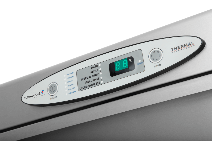 The TD50 Thermal Disinfection cycle is set for a 2-minute rinse at 82°C, followed by a cooling rinse to ensure the crockery and tableware is safe to handle when removing it from the dishwasher. The thermal rinse cycle activates a special door lock for the duration of the rinse so that the door cannot be opened while the machine is performing a cycle, thus resulting in no risk of re-introducing bacteria.