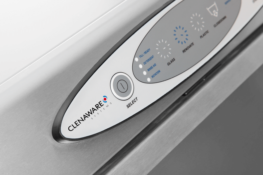 The Sovereign Glasswasher has a dedicated Renovate Cycle for renovating glasses. This cycle removes the build-up of non-rinsable films, which can make a drink appear flat, to make glasses like new again. The dedicated Renovate Cycle is unique to Clenaware machines and designed for use with the Renovate powder.