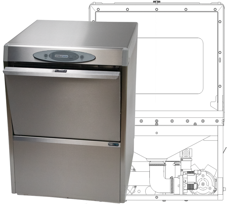 The Gogglewash machine is designed to be a fully integrated machine with everything that you need built into it. The machine includes a rinse booster pump, a waste pump and chemical injection and sensing. It also contains a built-in self-diagnostics system and is WRAS approved.
