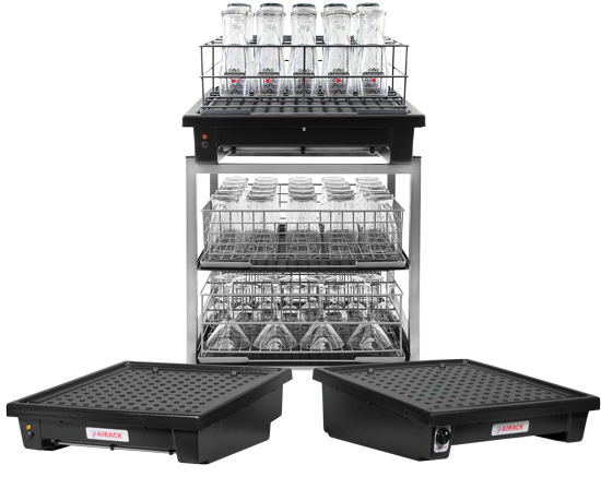 The correct way to dry wet glasses is to ‘air’ dry them naturally, but this process can take 40 minutes or longer. Drying your glassware quickly and efficiently is essential, especially in busy periods. The Airack Glass Dyer can dry glasses 10 times faster than air drying them.