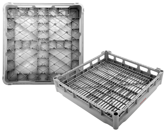 The Open Dish Rack is of Thermoplastic design and has a flat open base, making it possible to stack plates, bowls and other dishwasher items. The open area also allows for extra utensils and cutlery or larger items such as whisks or large kitchen knives that may otherwise not fit into the Cutlery Rack. The Open Rack is suitable for most commercial dishwashers that take a basket up to 500mm.
