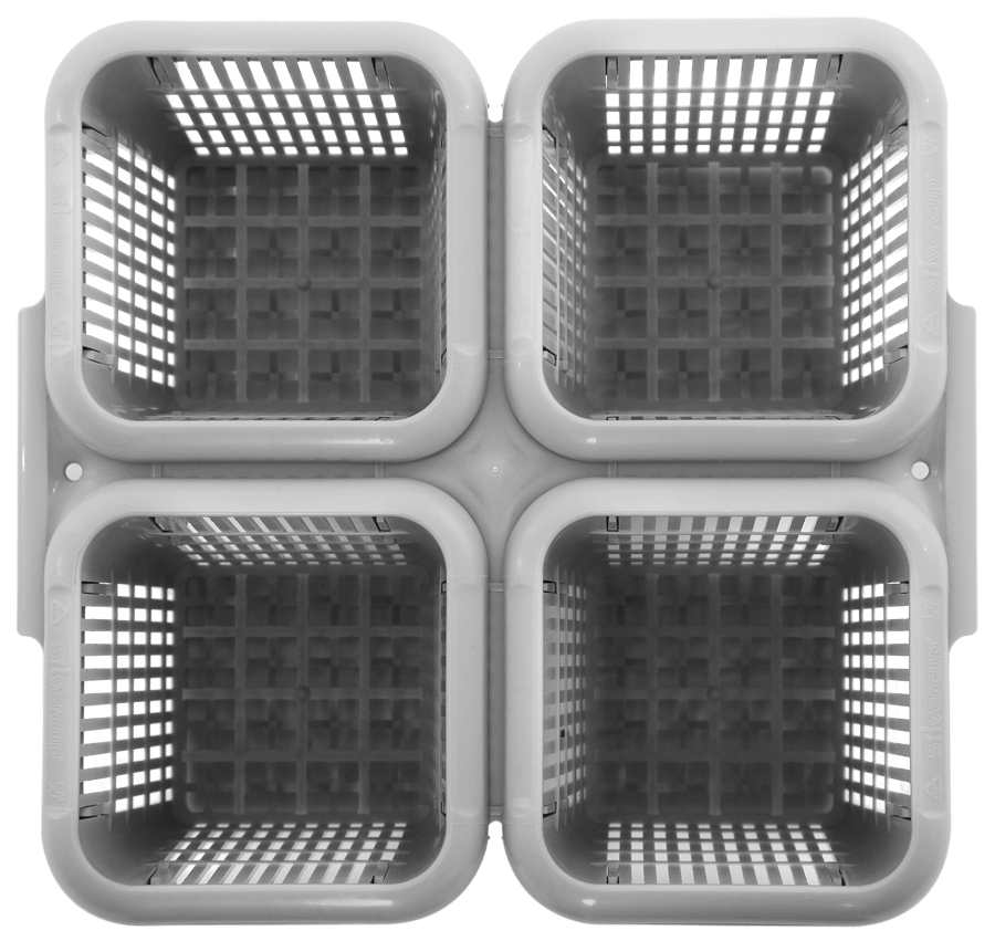 This basket comes with offset hand slots which make it easier to handle and transport. This Open Glass Basket can be used in any 40 size glasswasher.
